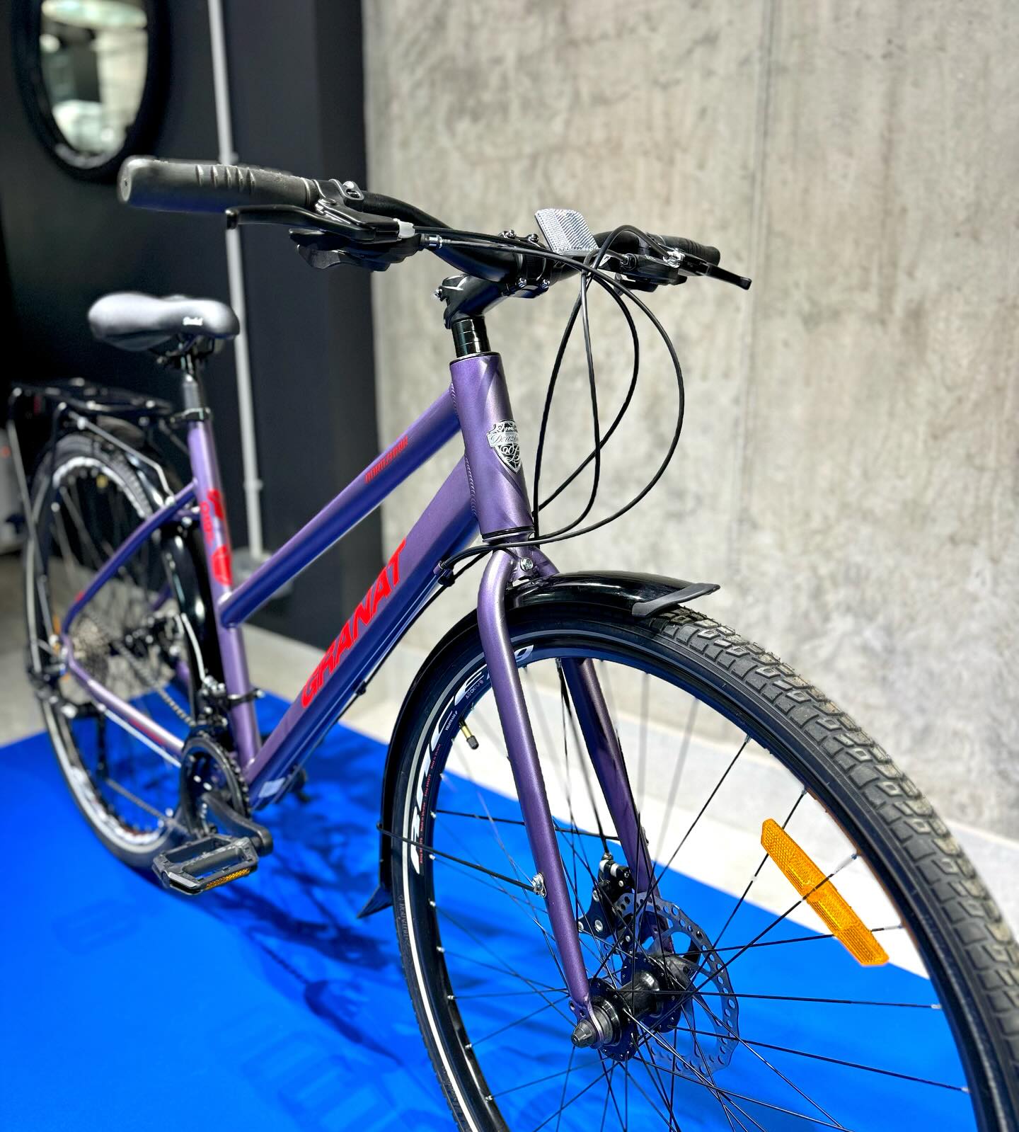 Цей велосипед оснащений жорсткою стальною вилкою, що забезпечує стабільність під час їзди, а обидві втулки — передня та задня — виконані з алюмінію, що робить їх легшими та міцнішими. Задній перемикач SHIMANO RD-TX800 пропонує 7-8 швидкостей. Завдяки йому ви легко можете перемикати передачі навіть у найнеочікуваніші моменти! Ваша поїздка стане більш комфортною та безпечною з механічними дисковими гальмами, які зупинять вас в один момент, коли це буде потрібно.