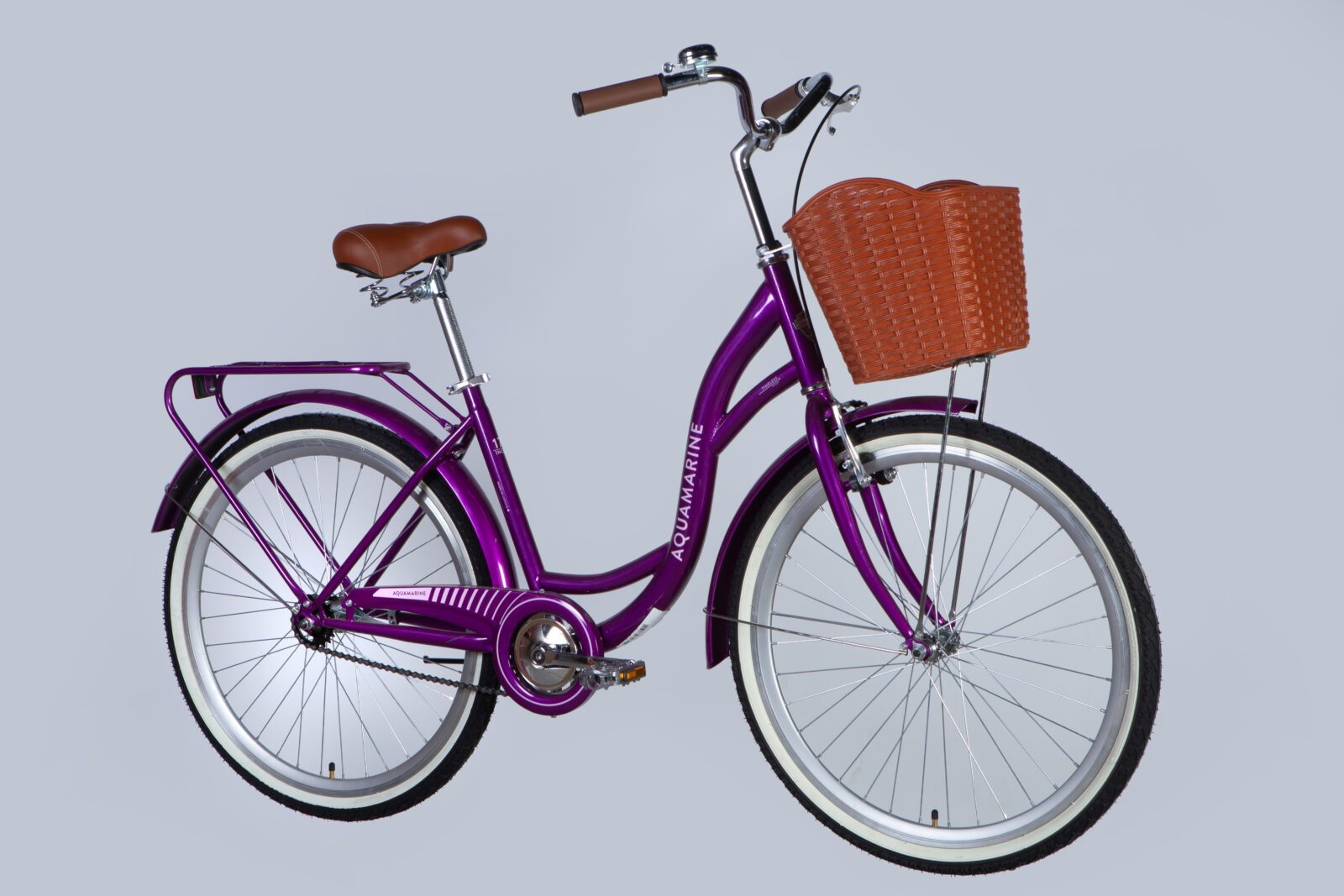 Велосипед DOROZHNIK AQUAMARINE 26″ міський жіночий з кошиком рама-17″ високоміцна сталь бузковий