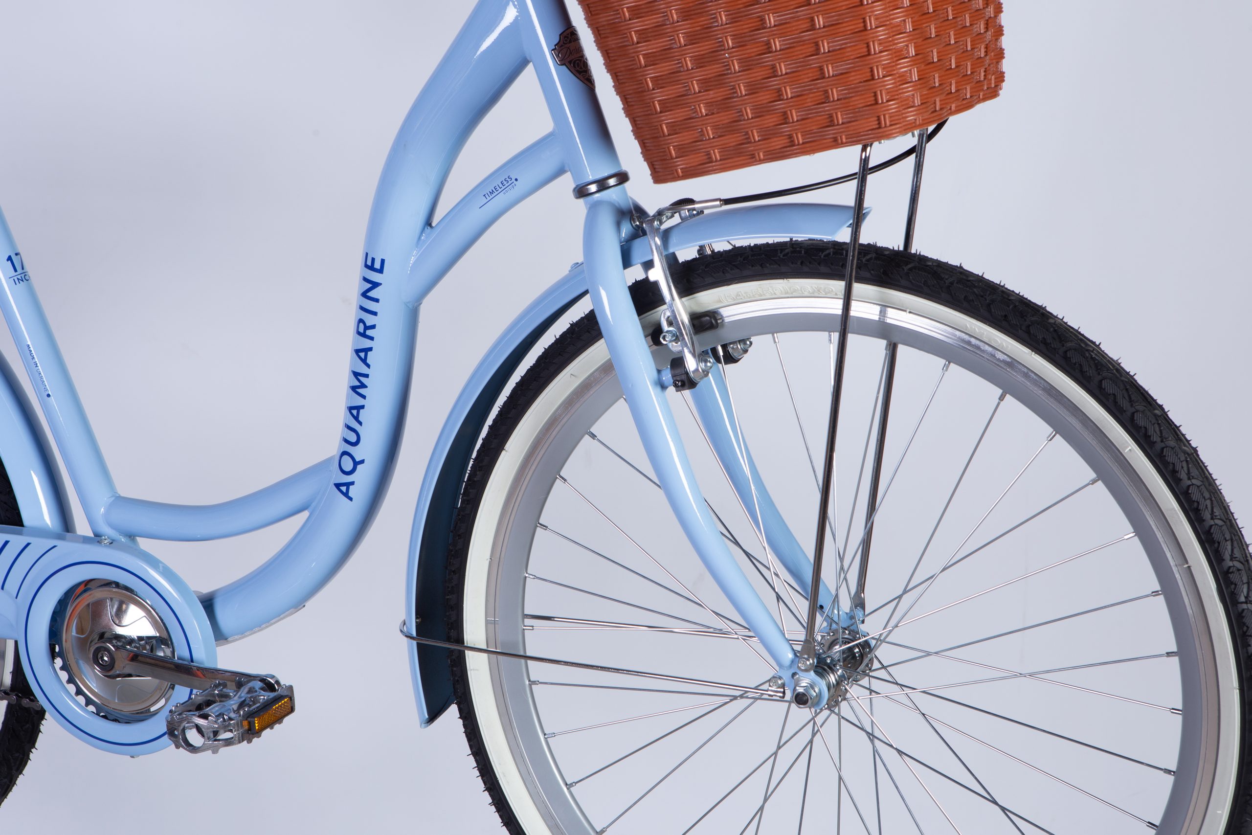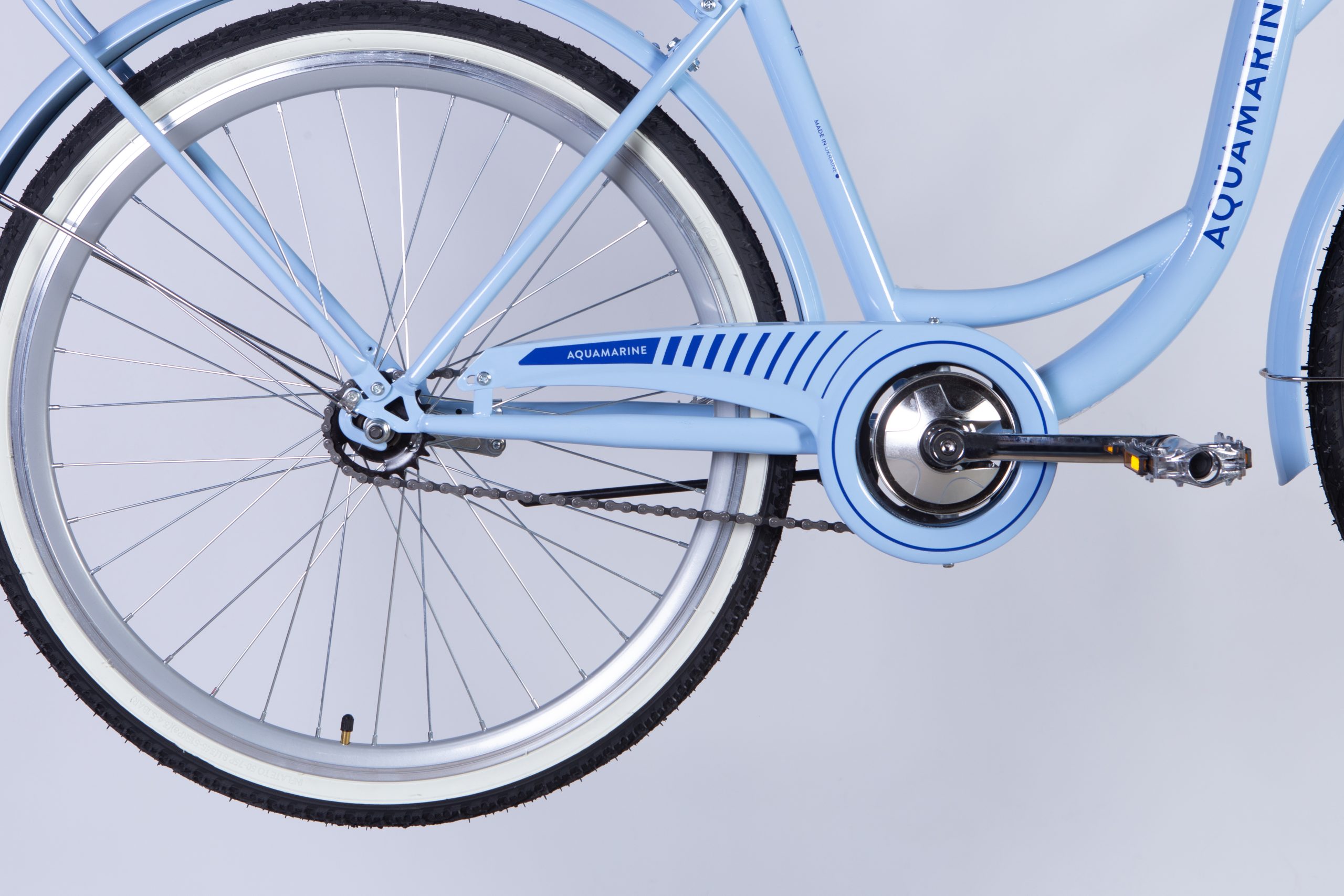 Темно-блакитна рама, виготовлена з високоміцної сталі, вражає міцністю та витривалістю. Неймовірно стильний AQUAMARINE стане яскравим акцентом у будь-якому міському пейзажі. Рама має оптимальну висоту 17 дюймів, що робить її підходящою для велосипедистів зрістом від 160 до 180 см. Тож, не важливо, чи ви вище середнього зросту, чи ні – цей велосипед обв’є та підкреслить вашу індивідуальність.