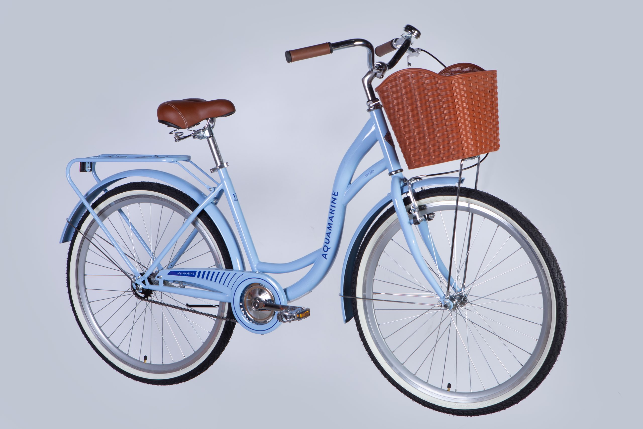 Велосипед DOROZHNIK AQUAMARINE 26″ міський жіночий з кошиком рама-17″ високоміцна сталь темно-блакитний