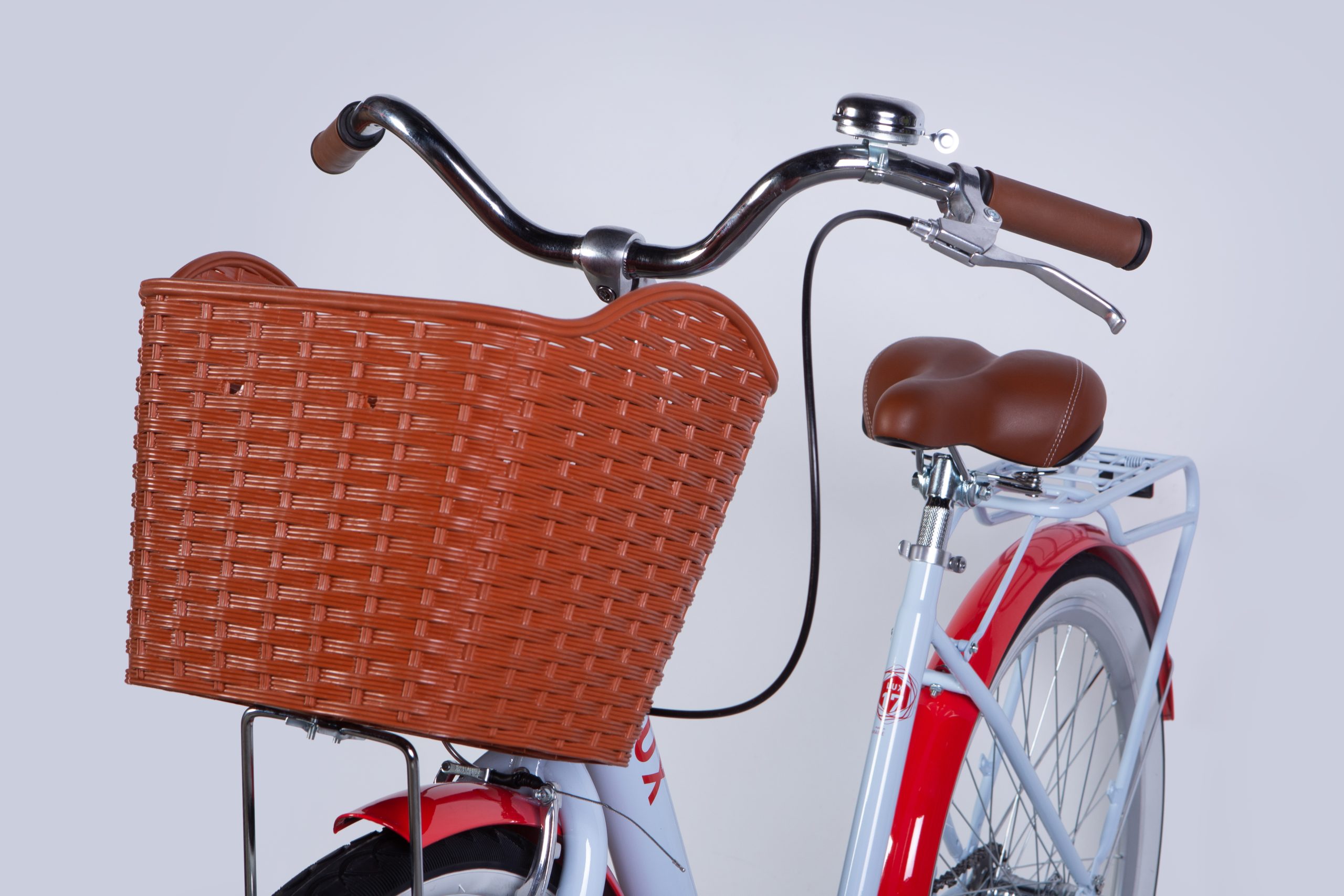 Що ще варто відзначити? Багажник, на якому можна перевезти всі необхідні речі, корзина для покупки, підніжка і дзвоник — усі ці елементи довершують загальне враження. Одним словом, він ідеальний для покупок, поїздок до друзів або ж для поїздок на природу. Окрім того, велосипед має надійні педалі з алюмінію і шатуни, які зроблять будь-який рельєф легко подоланим.