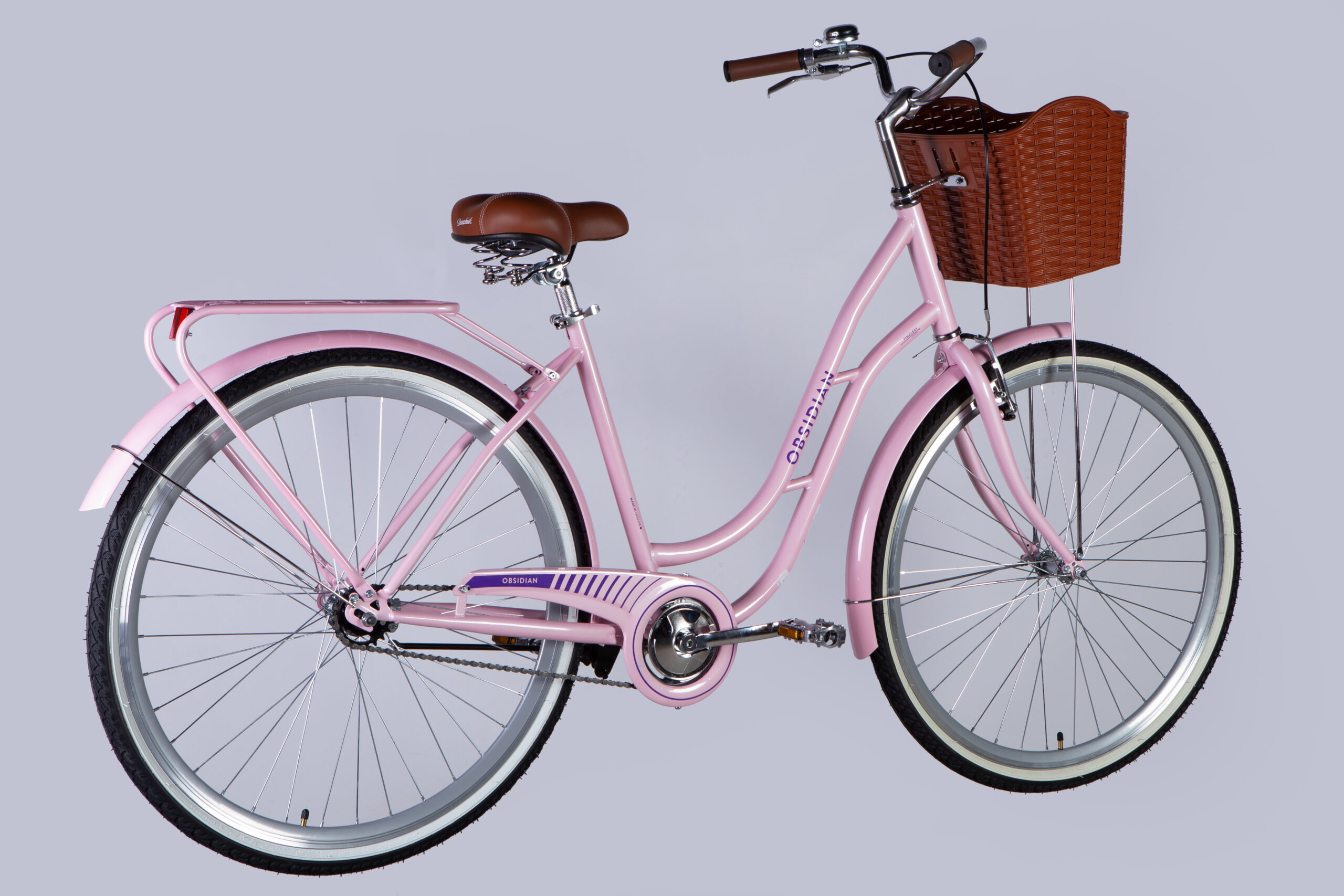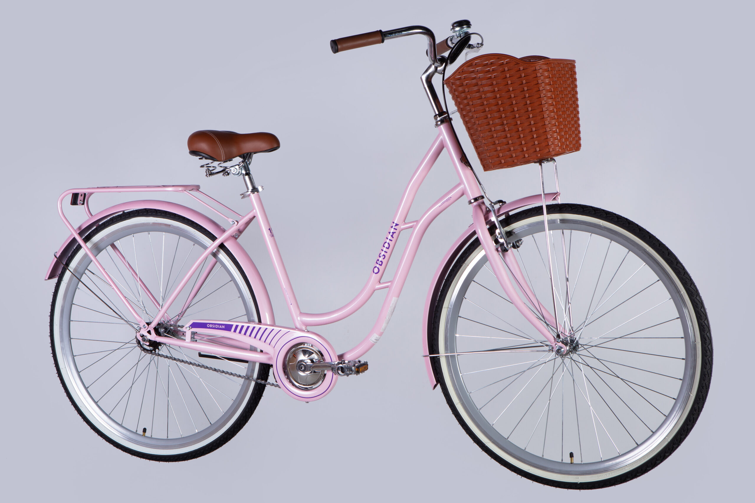 Велосипед DOROZHNIK OBSIDIAN 28″ міський жіночий з кошиком рама-19″ високоміцна сталь світло-рожевий