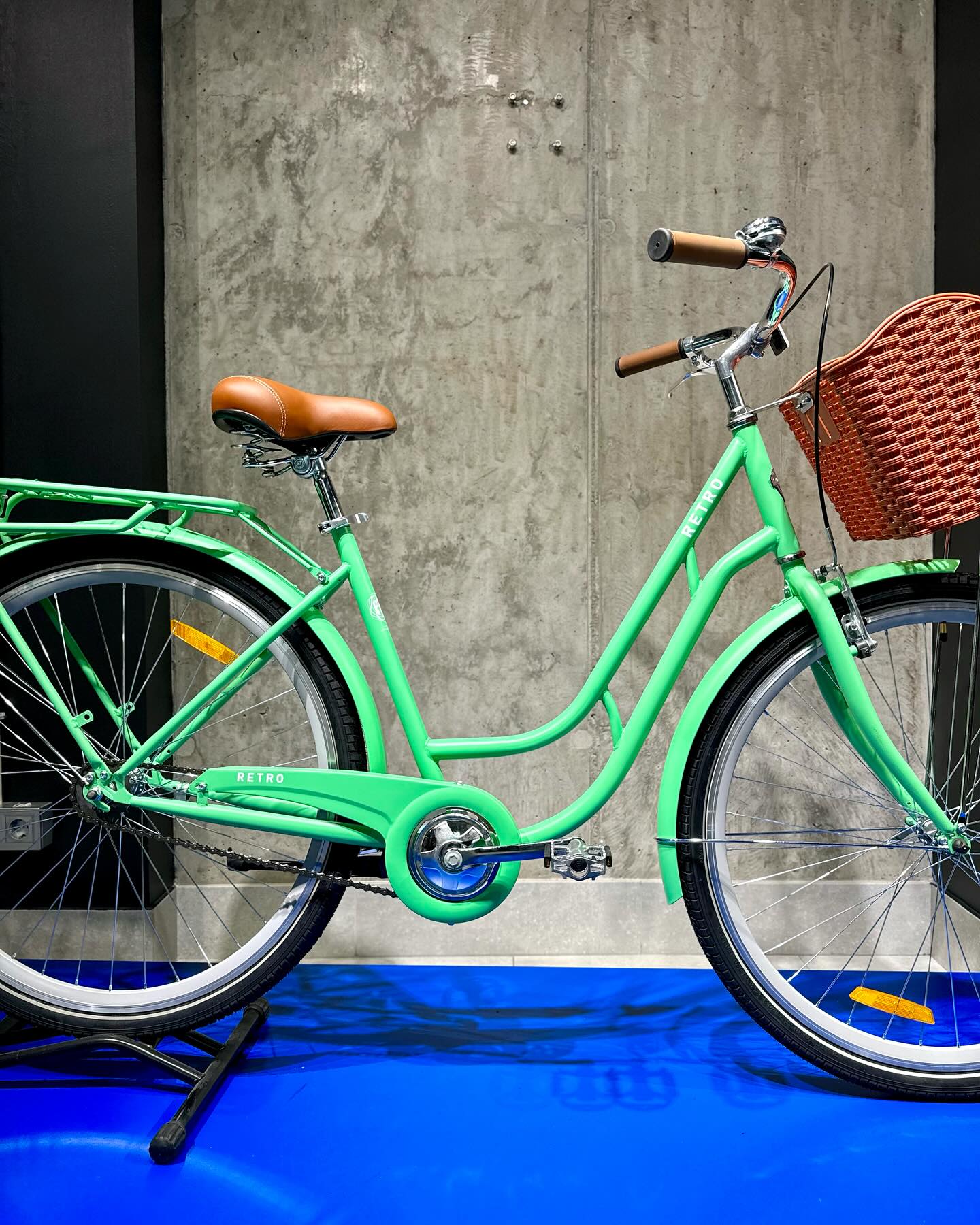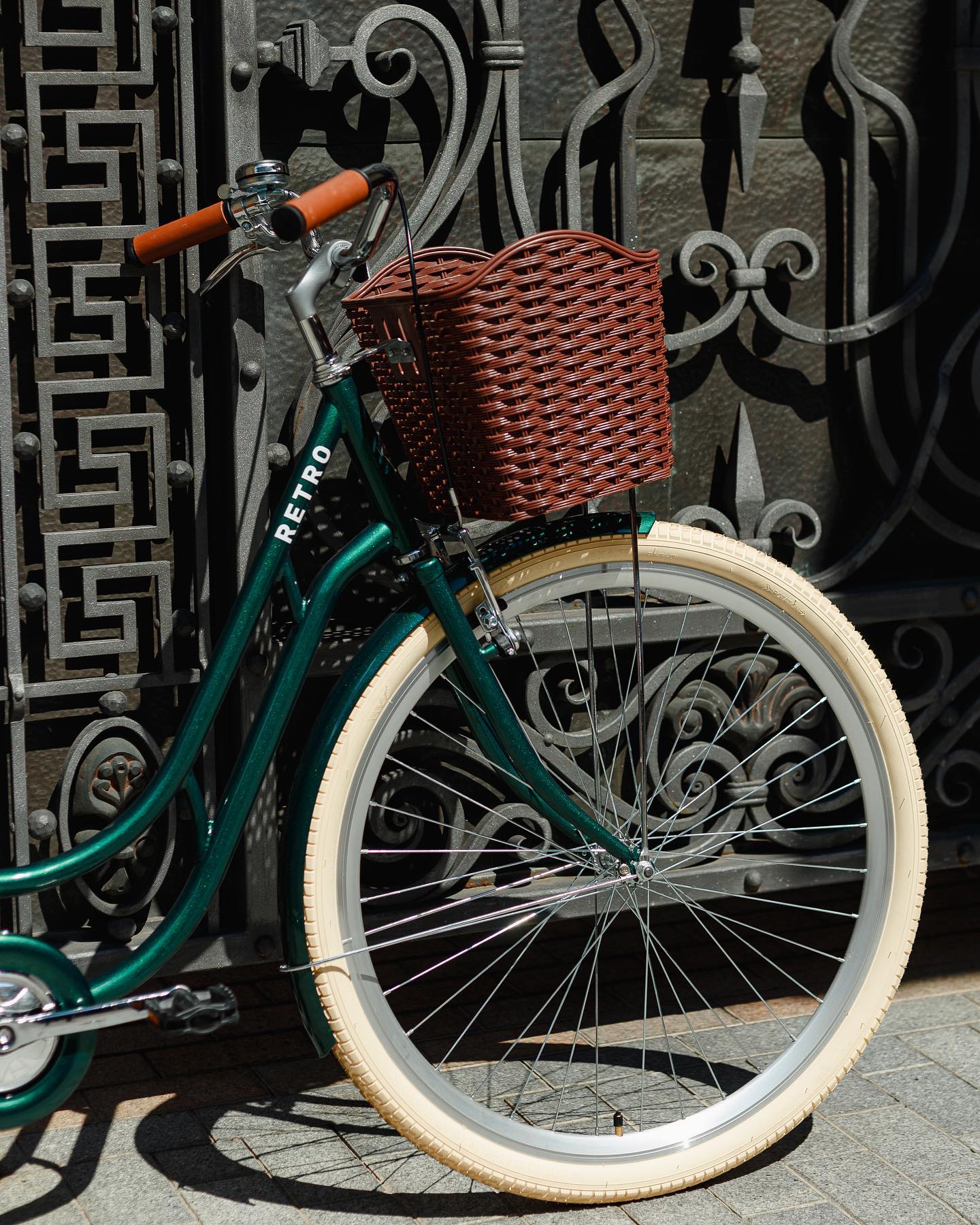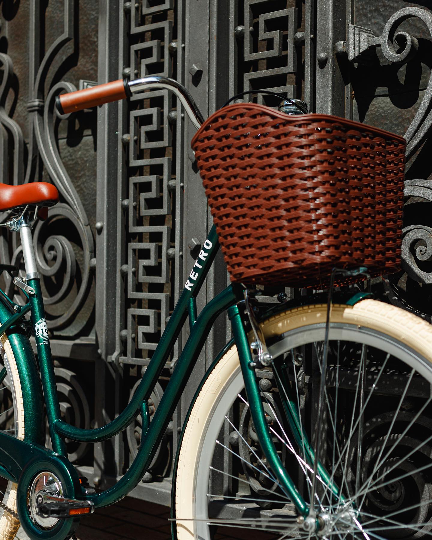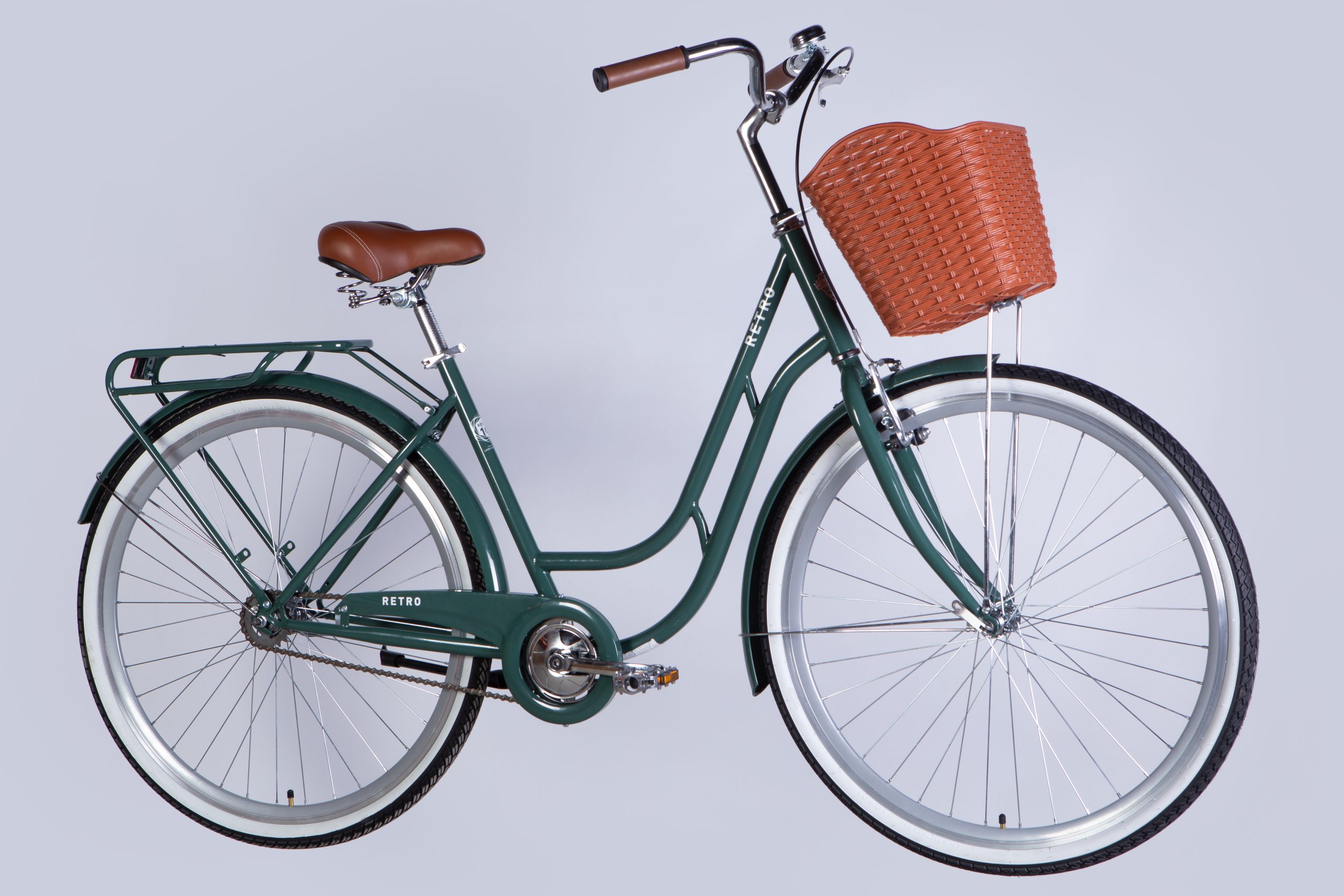 Велосипед DOROZHNIK RETRO 28″ міський жіночий з кошиком рама-19″ високоміцна сталь зелено-сірий