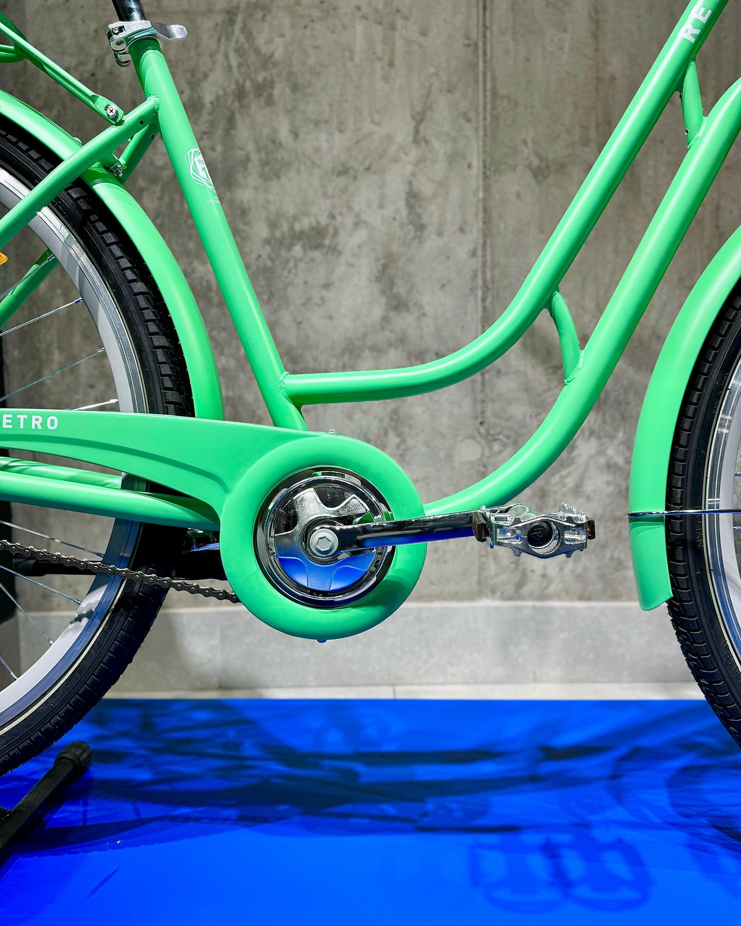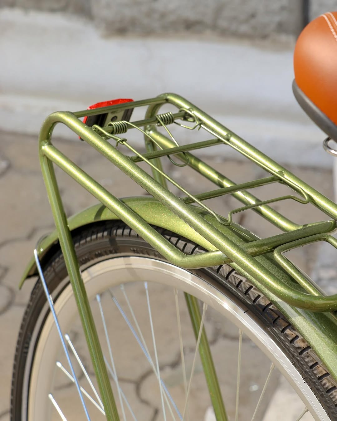 Перше, що вражає в цьому велосипеді, – це його стильний зелено-сірий колір. Він точно підкреслить вашу індивідуальність, зберігаючи при цьому класичний вигляд. Рама велосипеда виготовлена з високоміцної сталі, що гарантує надійність і довговічність. Вам не доведеться стривожуватися, що вага велосипедиста перевищить 100 кг – ця модель витримає більше ніж достатньо!