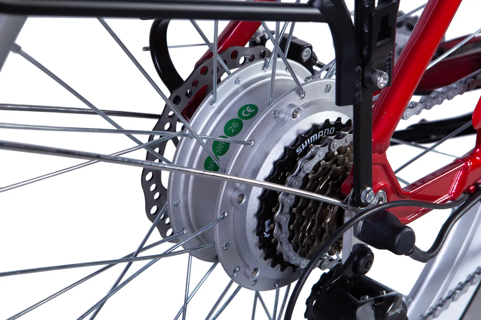 колеса 26 ” зріст 160 – 180 см рама алюмінієва втулка DD тріскачка гальма Дискове механічне потужність 500 Вт