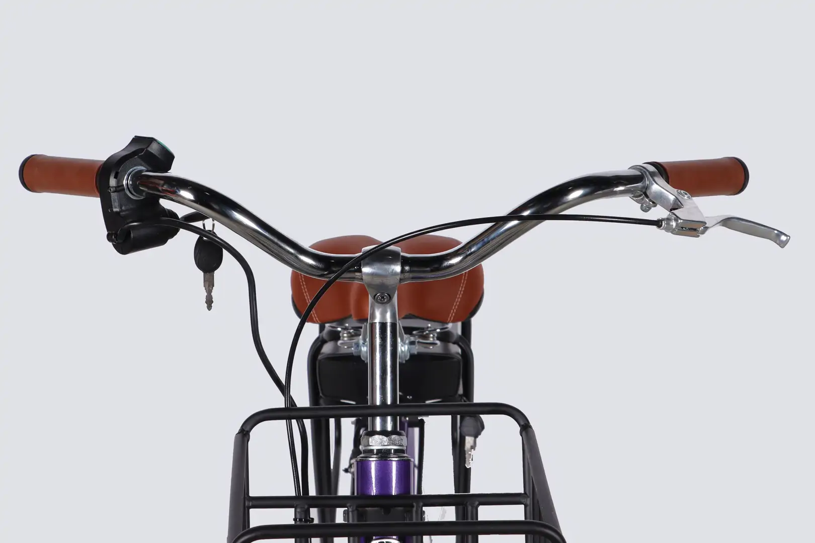 Зручні деталі. Не забувайте також про гарні деталі! Велосипед оснащений кошиком, який ідеальний для покупок чи легкого перевезення речей. Багажник, зроблений із чорного алюмінію, додає зручності в перевезенні ваших маленьких важливих речей. І не забудьте про центральну підніжку — вона стане в нагоді, щоб зупинитися в будь-який момент.
