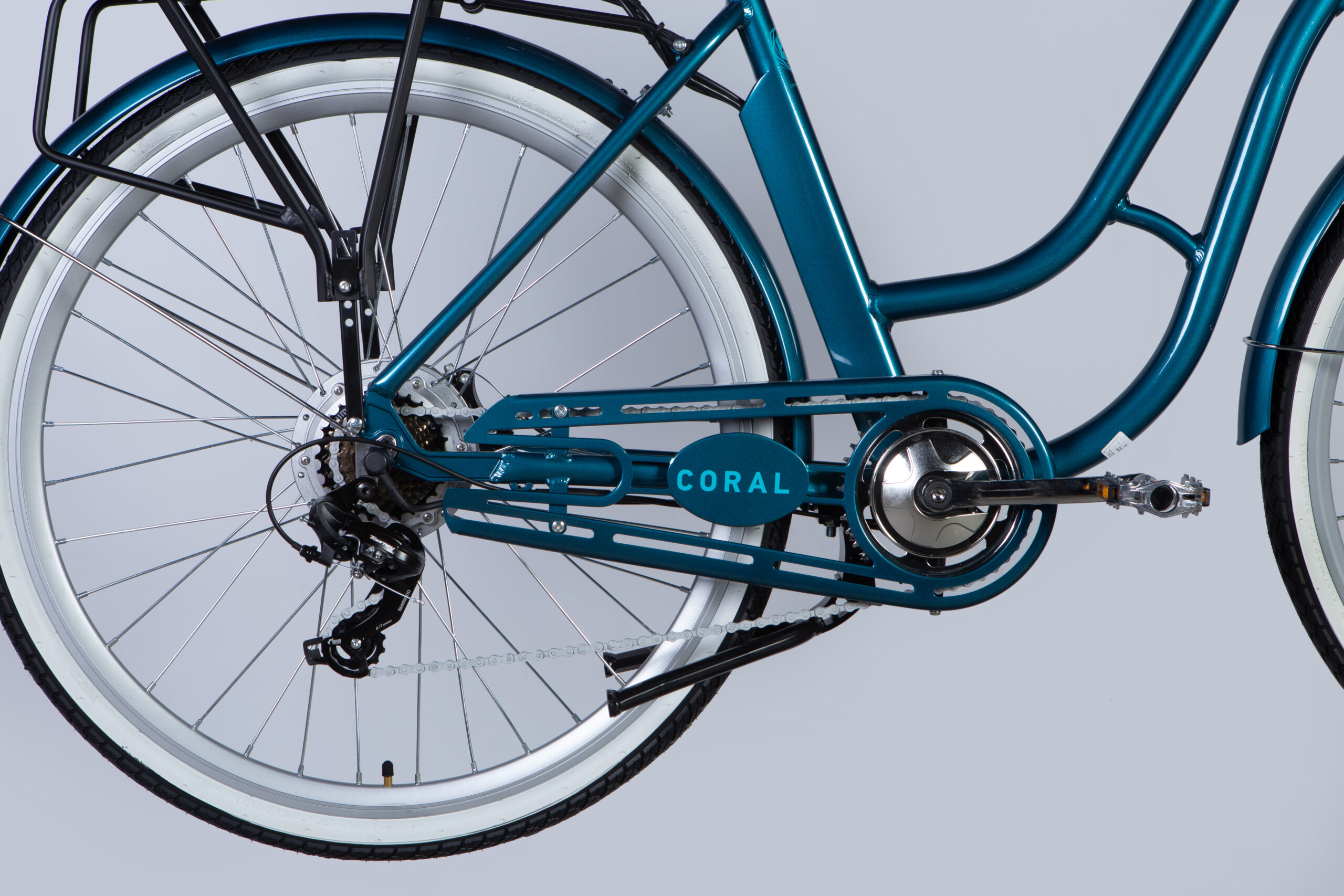 Цей велосипед обладнаний заднім перемикачем SHIMANO TY-300, який дозволяє вам насолоджуватись 7 швидкостями, а широкий діапазон касети SHIMANO TZ-500 дозволяє легко підніматися у гору або ж мчати на рівнинах. Легкість перемикання передач робить ваші прогулянки ще більш захоплюючими!