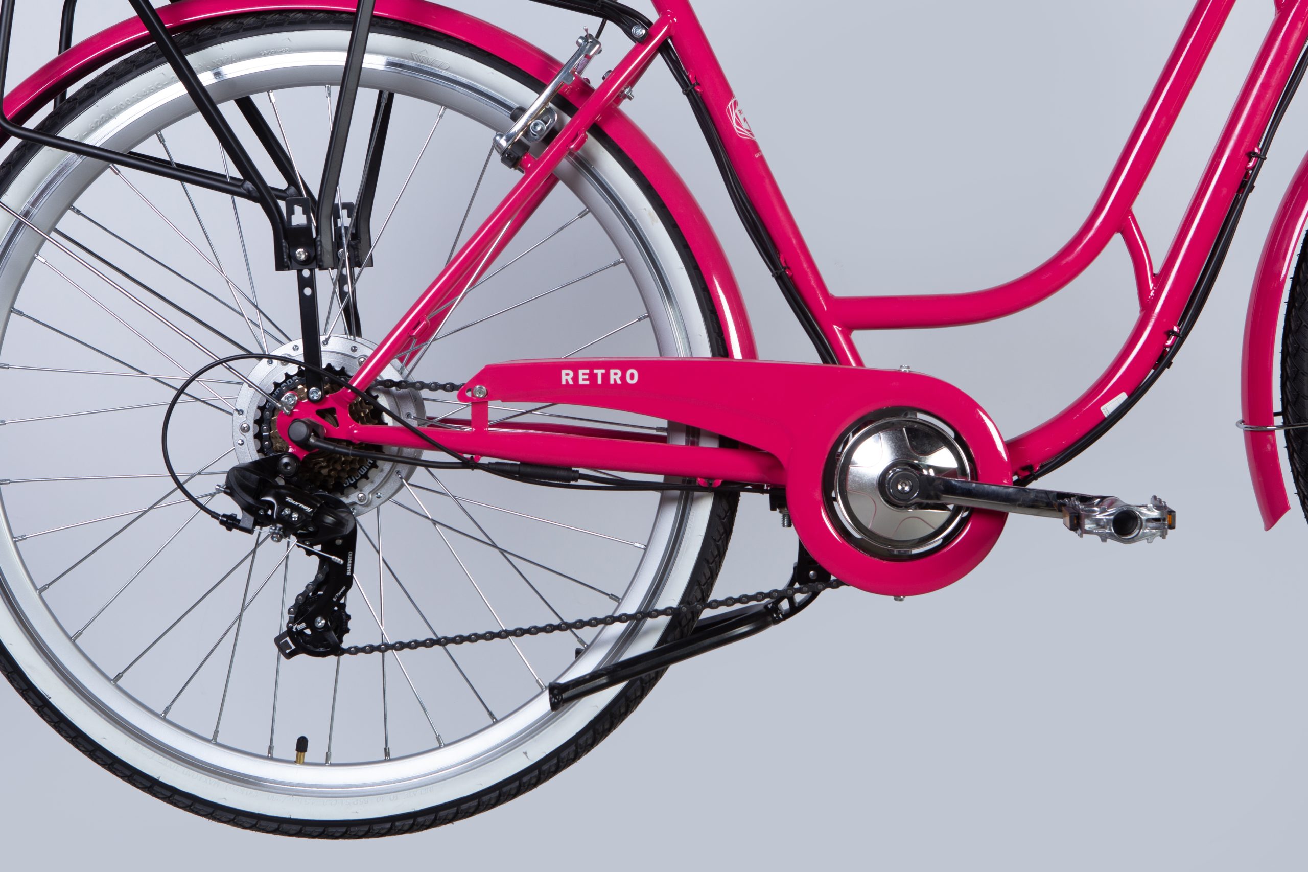Велосипед має елегантний рожевий відтінок — тут немає жодних компромісів зі стилем! Поєднання сучасних технологій та класичного дизайну привертає увагу всім оточуючим. Неважливо, куди ви поїдете, всі окинуть поглядом на вас, коли ви матимете цей чудовий витвір на двох колесах!